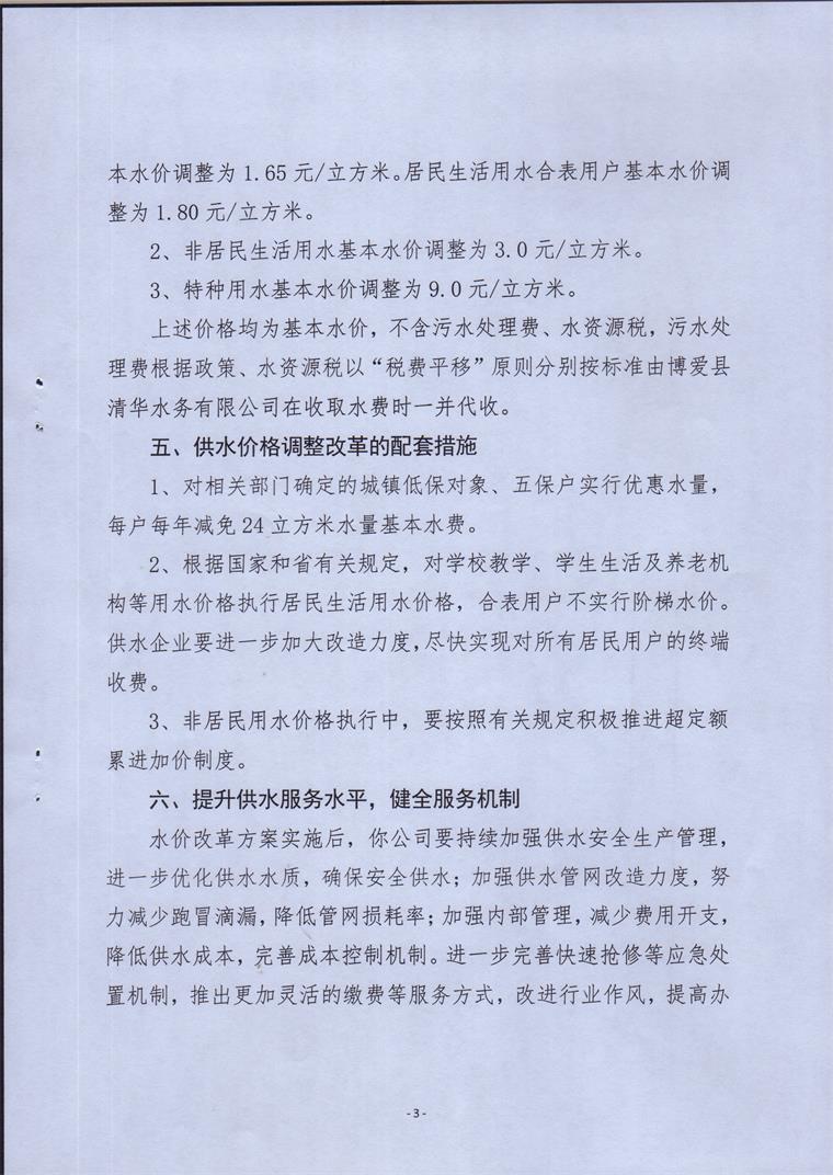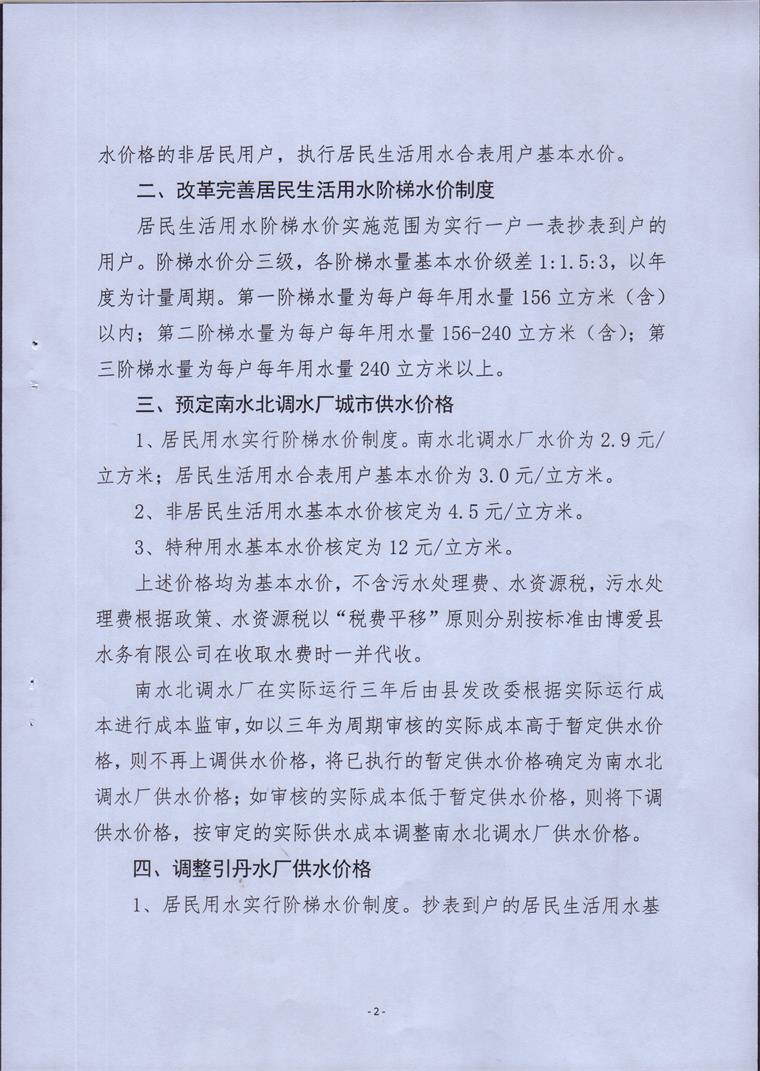 注:1、水价执行文件(博发改〔2020〕6号),自2020年4月抄见表量起执行;